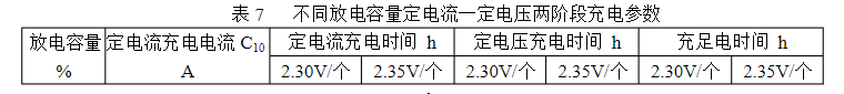 7不同放電容量定電流一定電壓兩階段充電參數
