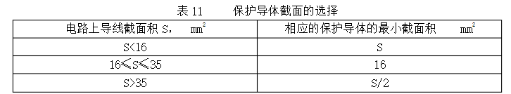 6當運用直流電源設備構成作為維護電路部件時,其導線截面積按表11選取,也可通過計算辦法選取。