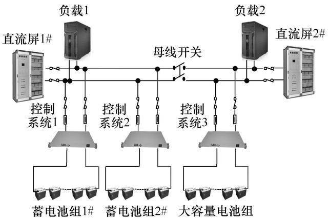 將原有的兩組蓄電池通過本文方法進行并聯使用,形成容量更大的蓄電池系統接入直流母線1將另一個大容量的新蓄電池組及相應的控制系統接入直流母線2。在運行幾年后,待原有的兩組蓄電池到了使用壽命后,再更換成新的大容量的蓄電池組,將提高蓄電池組的利用率,降低電池采購成本。