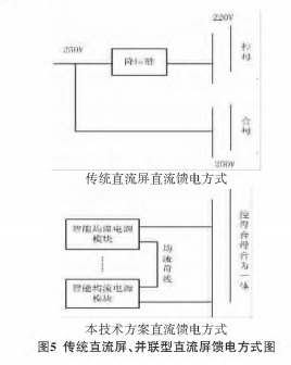 傳統直流屏控母和合母因為電壓不共同,負載要嚴厲區別,比方,微機維護.指示燈等有必要接入控母,斷路器分合閘、儲能電機等負載有必要接人合母。本文所論說的技術控母和合母的電壓等級共同,并聯輸出,可互用,便當用戶的運用。傳統直流屏、并聯型直流屏饋電辦法,如圖5所示。