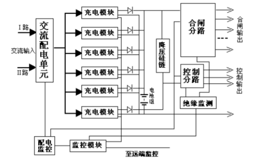 直流屏由高頻開關整流模塊,可編程控制器(PLC,蓄電池組,絕緣監視裝置,蓄電池自動監測裝置,母線電壓自動調節裝置,觸摸屏,預告信號裝置等組成。蓄電池采用免維護電池。