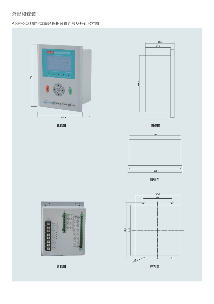 KSP-300 數(shù)字式綜合保護(hù)裝置是我公司為適應(yīng)我國電氣成套事業(yè) 發(fā) 展的需要,積累多年電力自動化產(chǎn)品開發(fā)經(jīng)驗(yàn),運(yùn)用新技術(shù)、新工 藝 而推出的一款經(jīng)濟(jì)型綜合保護(hù)裝置。裝置結(jié)構(gòu)設(shè)計(jì)緊湊、體積小 巧,交 直流電源通用,可滿足 10KV 及以下電壓等級進(jìn)出線、廠用 變等保護(hù)測 控功能。
